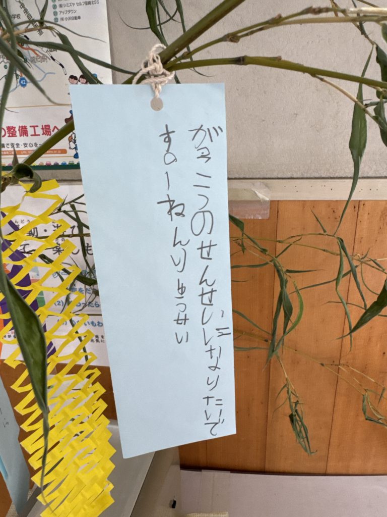 韮崎北西小学校の七夕飾りに書いてあった願い事が素敵だった。